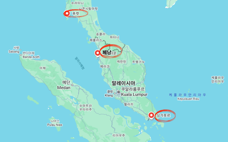 1. 싱가포르 → 2. 페낭 → 3. 푸켓